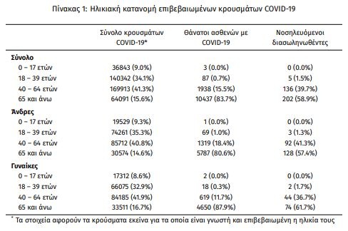 Οι νέοι θάνατοι ασθενών με covid-19 είναι 22, ενώ από την έναρξη της επιδημίας έχουν καταγραφεί συνολικά 12.465 θάνατοι. Το 95,2% είχε υποκείμενο νόσημα ή/και ηλικία 70 ετών και άνω.