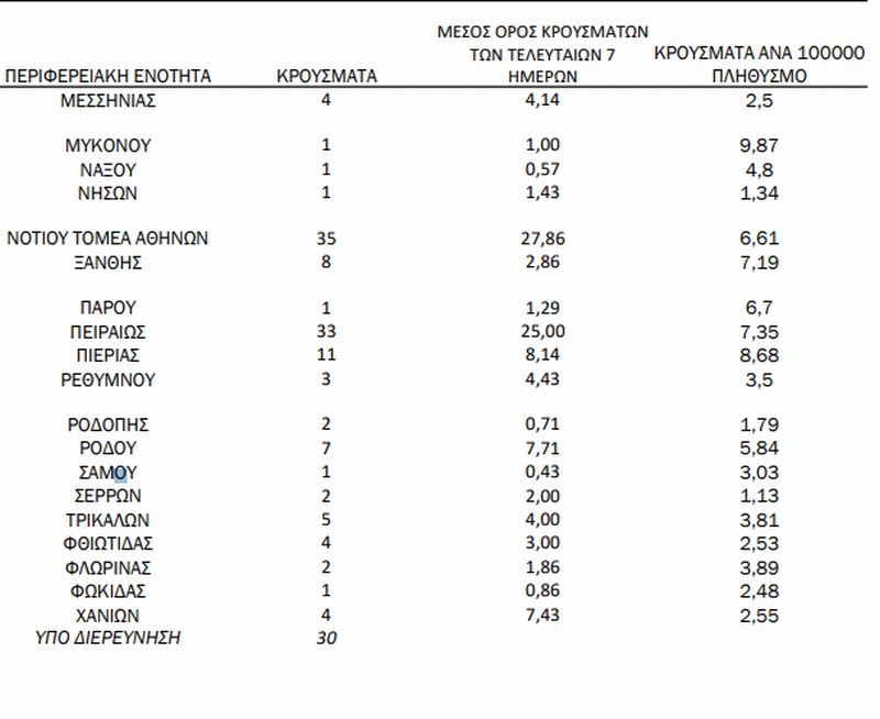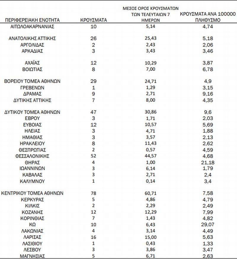 Τα κρούσματα ανά Περιφερειακή Ενότητα