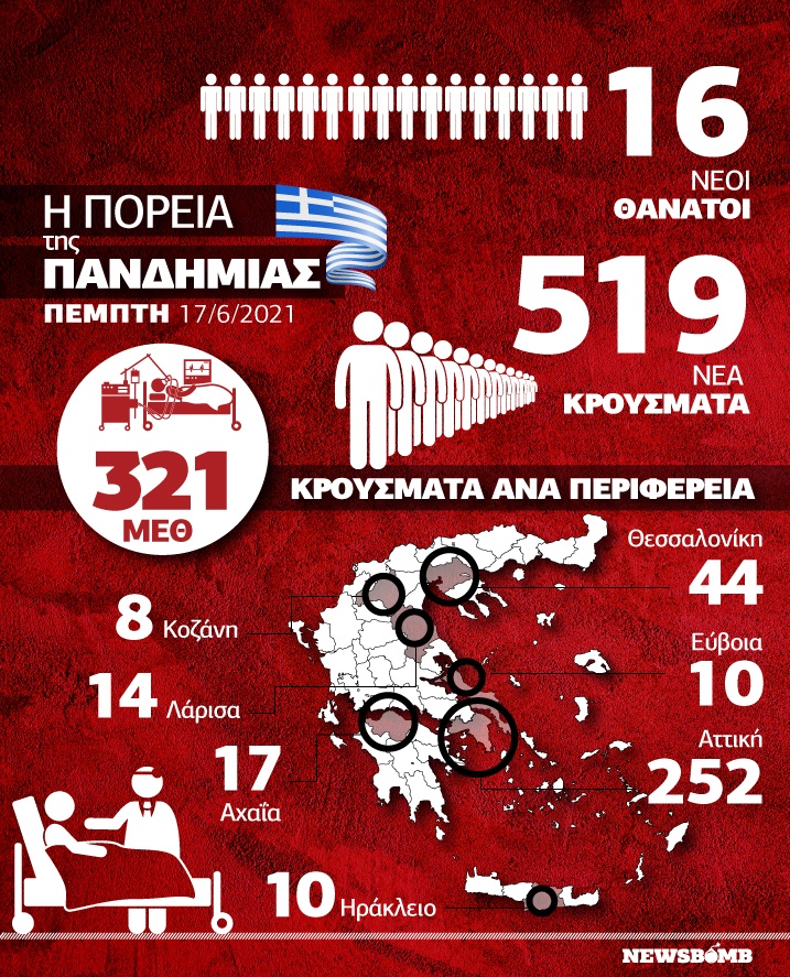 Τα επιδημιολογικά δεδομένα στη χώρα την Πέμπτη 17 Ιουνίου.Newsbomb.gr