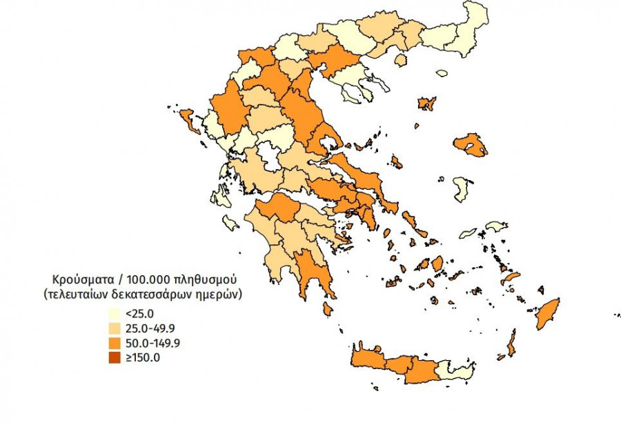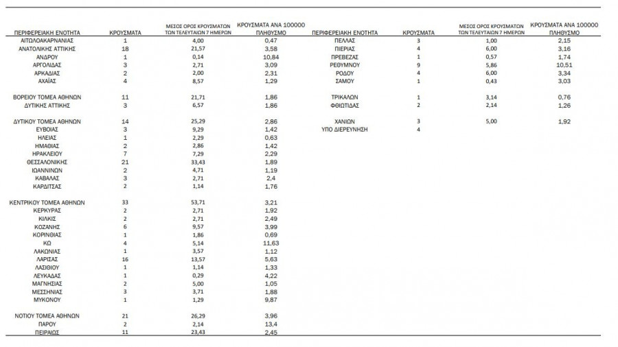 Τα κρούσματα ανά περιφερειακή ενότητα