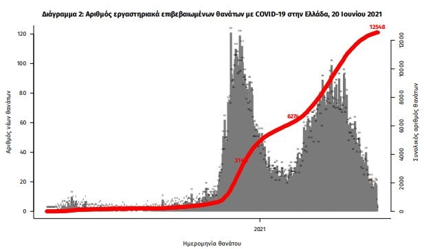 Οι νέοι θάνατοι ασθενών με COVID-19 είναι 14, ενώ από την έναρξη της επιδημίας έχουν καταγραφεί συνολικά 12.548 θάνατοι. Το 95.2% είχε υποκείμενο νόσημα ή/και ηλικία 70 ετών και άνω.