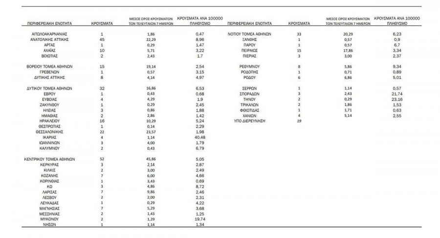 Δείτε αναλυτικά την κατανομή των κρουσμάτων, όπως την ανακοίνωσε ο ΕΟΔΥ: