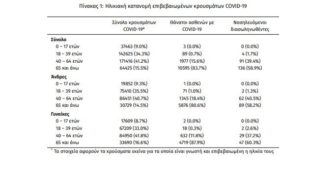 Οι νέοι θάνατοι ασθενών με COVID-19 είναι 18, ενώ από την έναρξη της επιδημίας έχουν καταγραφεί συνολικά 12.664 θάνατοι. Το 95,2% είχε υποκείμενο νόσημα ή/και ηλικία 70 ετών και άνω.