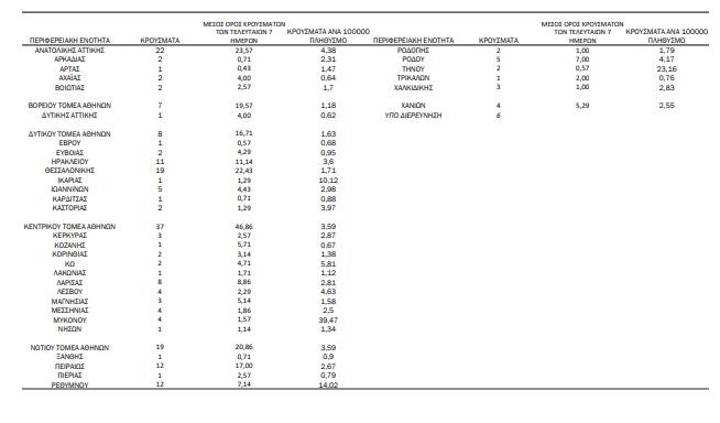 Τα κρούσματα ανά Περιφερειακή Ενότητα