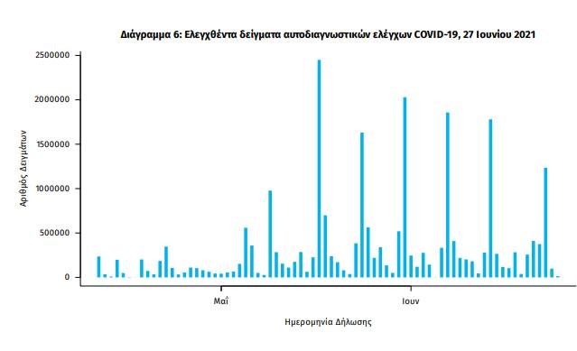 Αυτοδιαγνωστικοί έλεγχοι (Self-tests): Έως 25 Ιουνίου 2021, έχουν καταγραφεί ηλεκτρονικά 24.398.820 δηλώσεις αποτελέσματος αυτοδιαγνωστικού