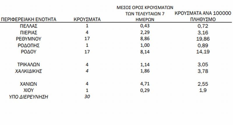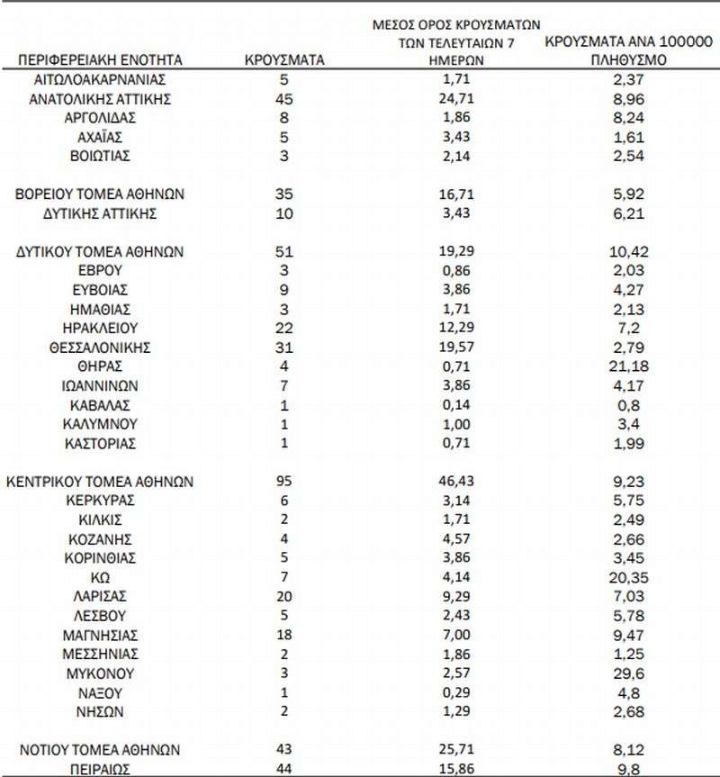 Τα κρούσματα ανά Περιφερειακή Ενότητα