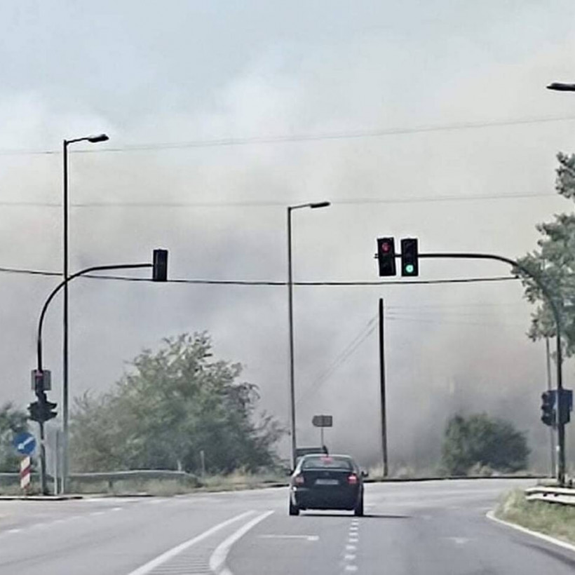 Φωτιά δίπλα από το χώρο του ΤΕΙ στη Λάρισα, κοντά στον περιφερειακό της οδού Τρικάλων, μαίνεται νωρίς το απόγευμα της Πέμπτης.
