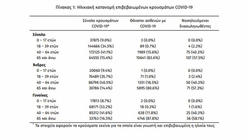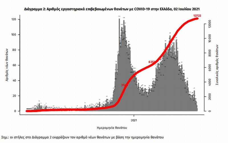 Οι νέοι θάνατοι ασθενών με COVID-19 είναι 10, ενώ από την έναρξη της επιδημίας έχουν καταγραφεί συνολικά 12.722 θάνατοι. Το 95.2% είχε υποκείμενο νόσημα ή/και ηλικία 70 ετών και άνω.