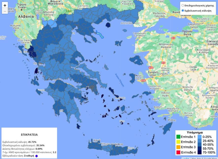 Ο χάρτης με την εμβολιαστική κάλυψη