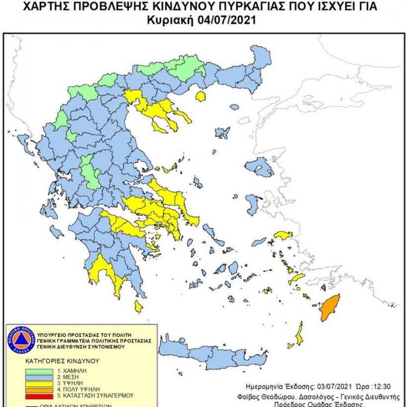Δείτε στο χάρτη, τις περιοχές που αντιμετωπίζουν υψηλό κίνδυνο σήμερα Κυριακή 4 Ιουλίου