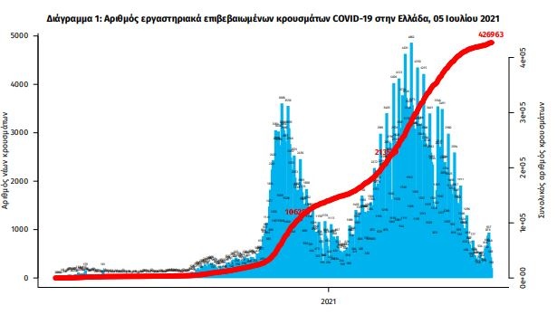 Τα νέα εργαστηριακά επιβεβαιωμένα κρούσματα της νόσου που καταγράφηκαν τις τελευταίες 24 ώρες είναι 801, εκ των οποίων 4 εντοπίστηκαν κατόπιν ελέγχων στις πύλες εισόδου της χώρας. Ο συνολικός αριθμός των κρουσμάτων ανέρχεται σε 426.963 (ημερήσια μεταβολή +0.2%), εκ των οποίων 51.2% άνδρες.
