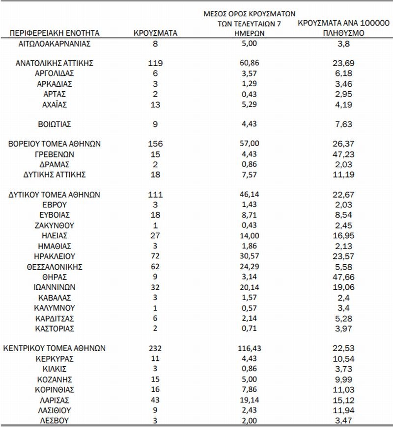 Τα κρούσματα ανά Περιφερειακή Ενότητα