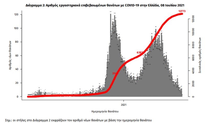 Οι νέοι θάνατοι ασθενών με COVID-19 είναι 10, ενώ από την έναρξη της επιδημίας έχουν καταγραφεί συνολικά 12.773 θάνατοι. Το 95.2% είχε υποκείμενο νόσημα ή/και ηλικία 70 ετών και άνω.