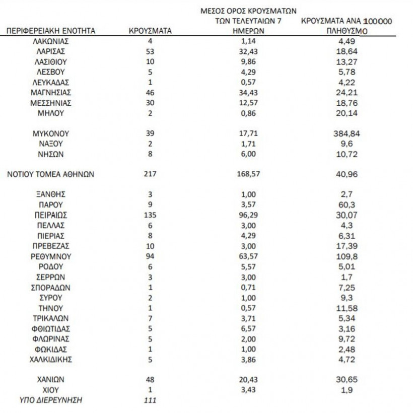 Συμπεριλαμβάνονται τόσο κρούσματα με ιστορικό ταξιδιού (“εισαγόμενα”) όσο και κρούσματα με πιθανή εγχώρια μετάδοση.