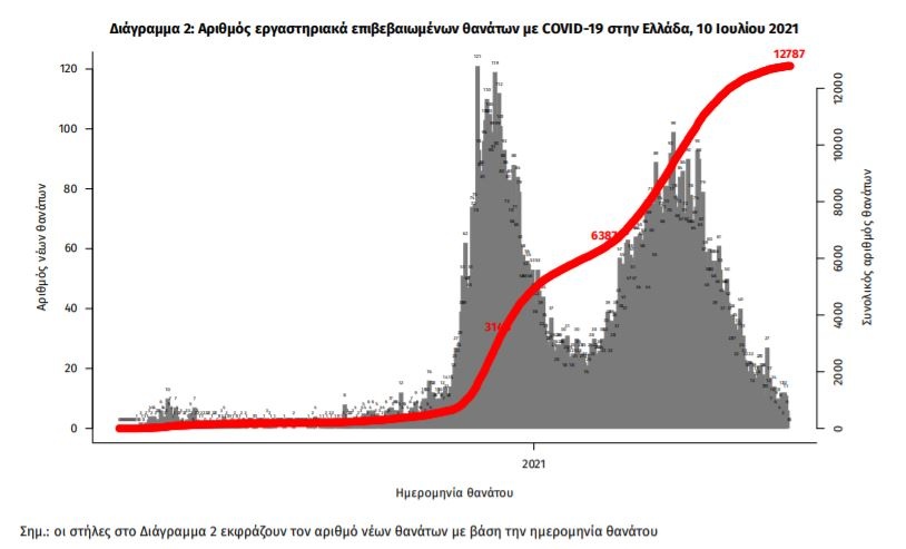 Οι νέοι θάνατοι ασθενών με COVID-19 είναι 2, ενώ από την έναρξη της επιδημίας έχουν καταγραφεί συνολικά 12.787 θάνατοι. Το 95.2% είχε υποκείμενο νόσημα ή/και ηλικία 70 ετών και άνω.