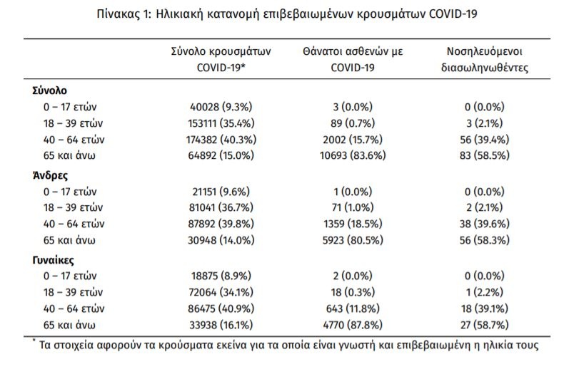 ασθενείς. Η διάμεση ηλικία των κρουσμάτων είναι 42 έτη (εύρος 0.2 έως 106 έτη), ενώ η διάμεση ηλικία των θανόντων είναι 78 έτη (εύρος 0.2 έως 106 έτη).