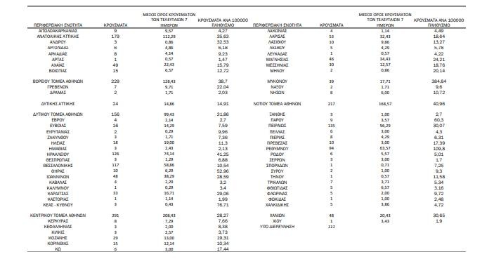 Τα κρούσματα ανά Περιφερειακή Ενότητα