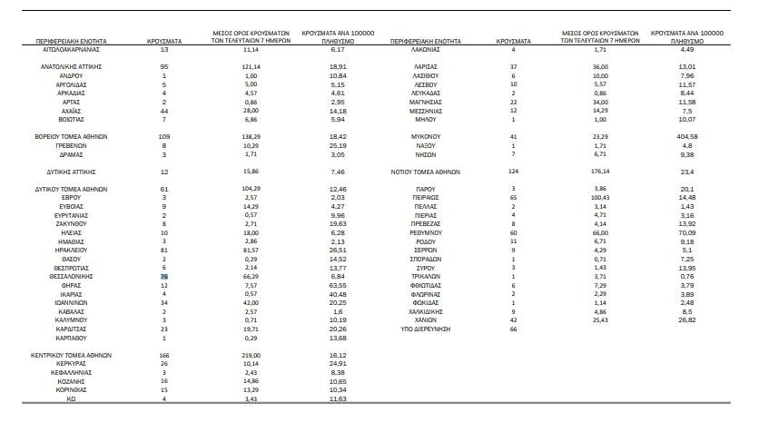 Τα κρούσματα σήμερα στην Αττική