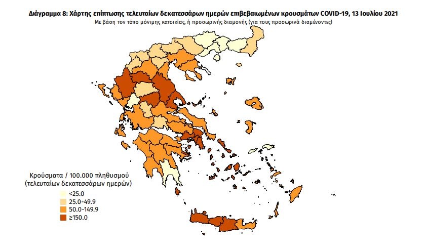 Συμπεριλαμβάνονται τόσο κρούσματα με ιστορικό ταξιδιού (“εισαγόμενα”) όσο και κρούσματα με πιθανή εγχώρια μετάδοση.