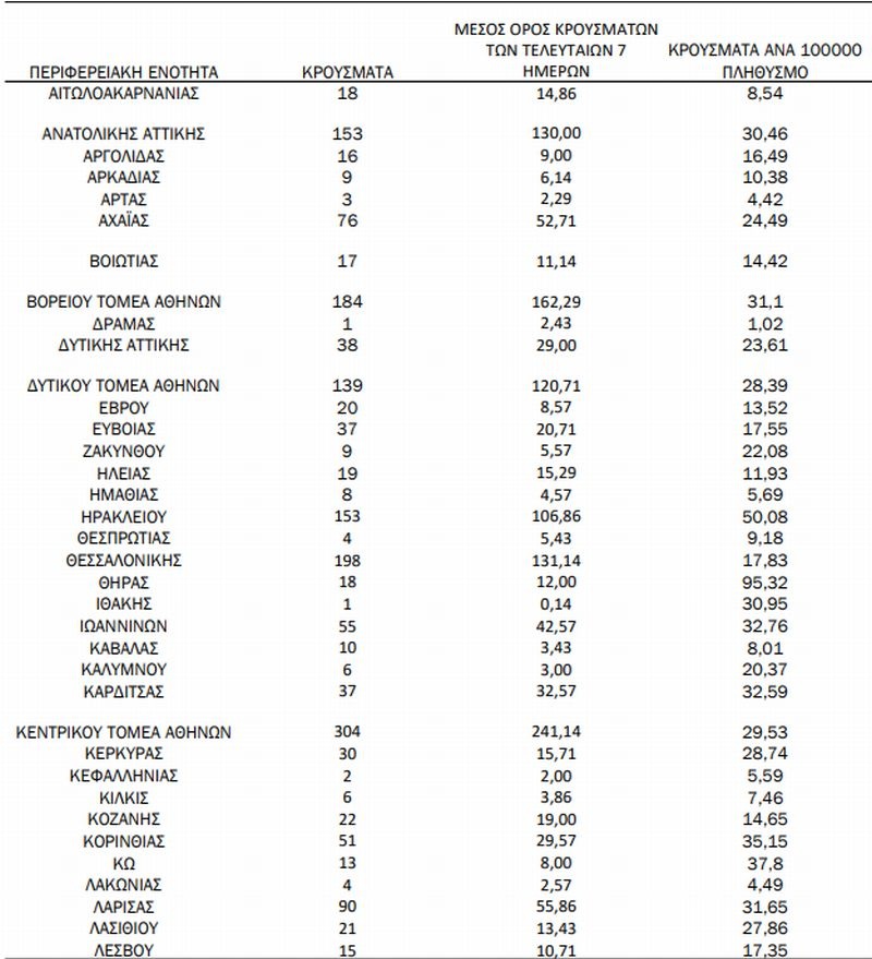 Τα κρούσματα ανά Περιφερειακή Ενότητα