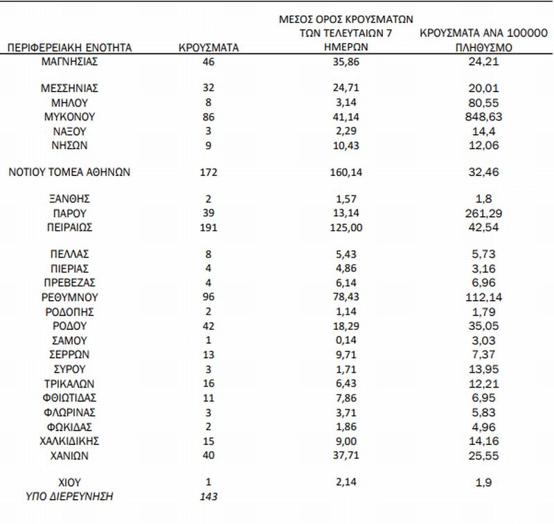 Κρούσματα σήμερα: Παραμένουν σε υψηλό επίπεδο τα επιδημιολογικά δεδομένα σε όλη τη χώρα. Ανησυχία για αστικά κέντρα και την Κρήτη.