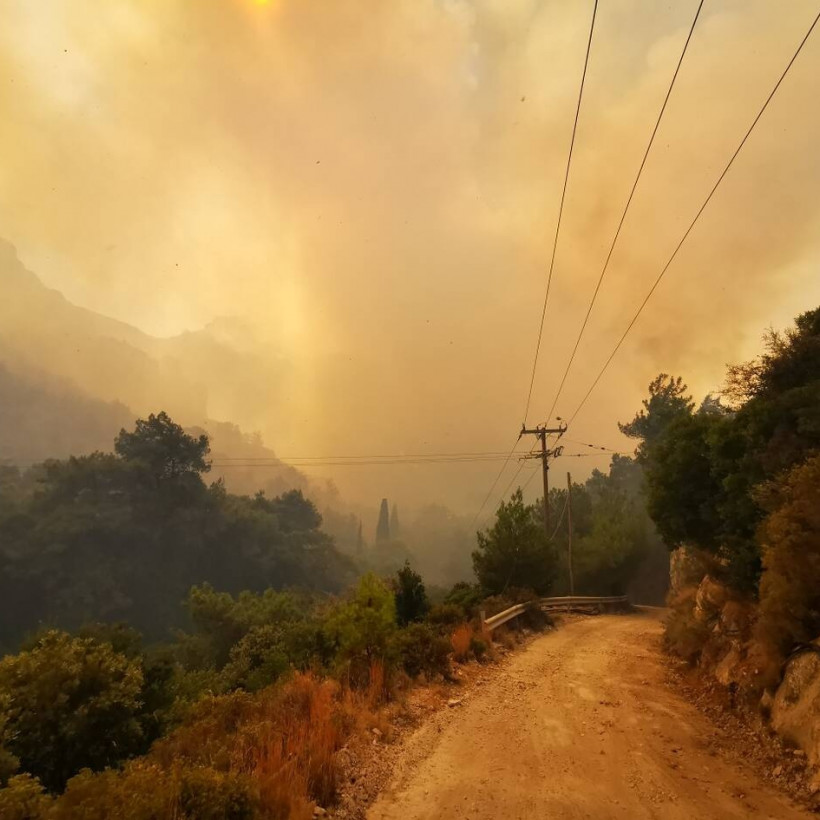 Οι ισχυροί άνεμοι συνέτειναν στη δημιουργία ισχυρού μετώπου στην περιοχή που είναι δύσκολα προσεγγίσιμη από τις επίγειες πυροσβεστικές δυνάμεις.