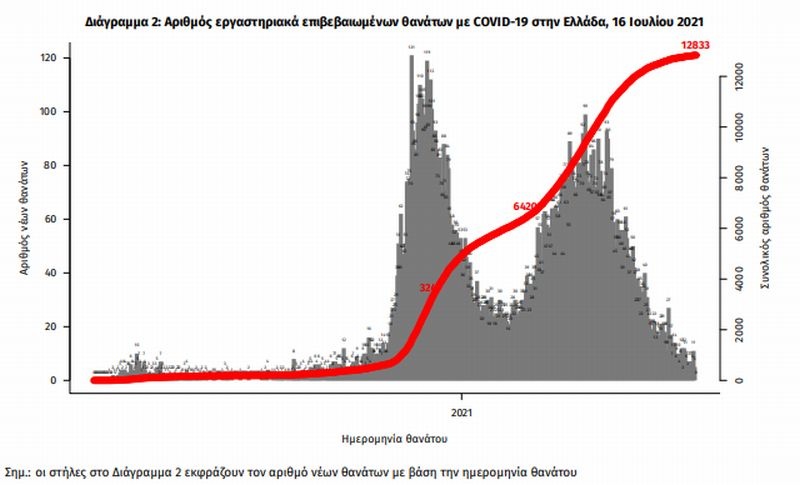 Οι νέοι θάνατοι ασθενών με COVID-19 είναι 14, ενώ από την έναρξη της επιδημίας έχουν καταγραφεί συνολικά 12.833 θάνατοι. Το 95.1% είχε υποκείμενο νόσημα ή/και ηλικία 70 ετών και άνω.
