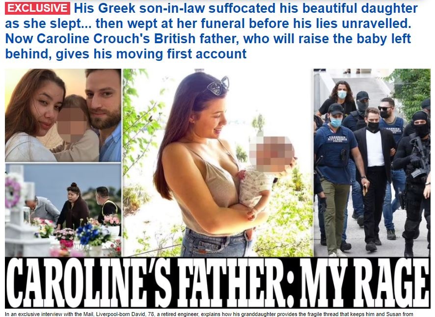 Στη βρετανική ταμπλόιντ Daily Mail μίλησε για άλλη μια φορά ο πατέρας της Καρολάιν, Ντέιβιντ, ο οποίος αναφέρθηκε στην εγγονή του Λυδία και στην οργή του απέναντι στον Μπάμπη Αναγνωστόπουλο που με τόσο βίαιο και ύπουλο τρόπο του στέρησε την κόρη του.