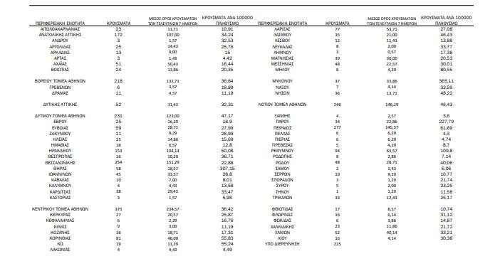 Τα κρούσματα ανά Περιφερειακή Ενότητα