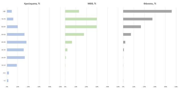 To 89.6% έχει υποκείμενο νόσημα ή/και ηλικία 70 ετών και άνω. Από την αρχή της πανδημίας έχουν εξέλθει από τις ΜΕΘ 2.770 ασθενείς.