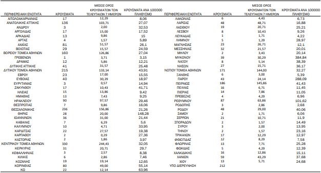 Η κατανομή των 2.944 νέων εγχώριων κρουσμάτων ανά Περιφερειακή Ενότητα παρουσιάζεται στον κατωτέρω πίνακα.