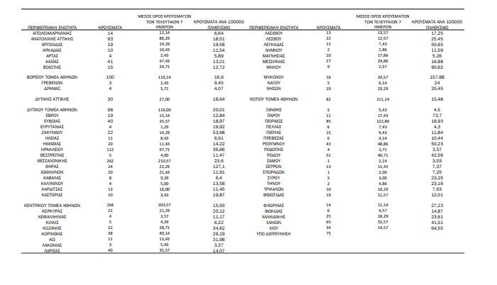 Με βάση τα επιβεβαιωμένα κρούσματα των τελευταίων 7 ημερών, 125