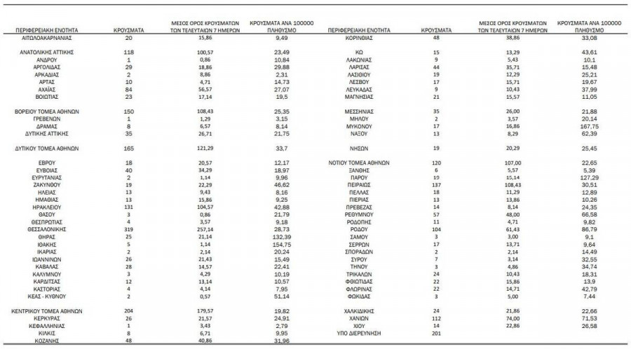 Η διασπορά των νέων κρουσμάτων σήμερα στην υπόλοιπη Ελλάδα