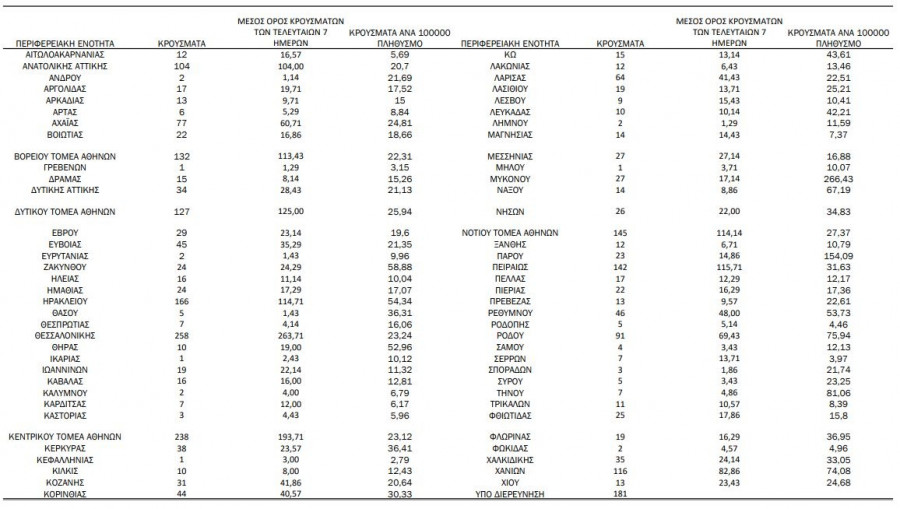 Η διασπορά των νέων κρουσμάτων σήμερα στην υπόλοιπη Ελλάδα
