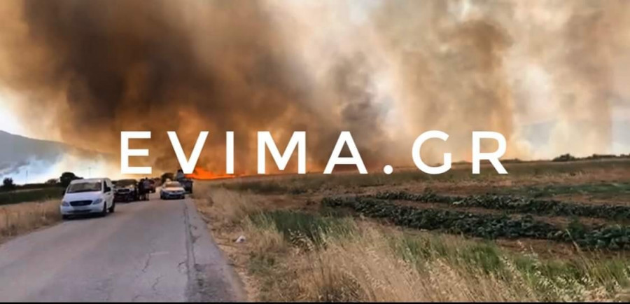 Η φωτιά καίει καλαμιές και είναι μεγάλη όπως αναφέρουν στο evima.gr