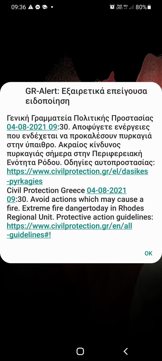 Ρόδος: Μήνυμα του 112 έλαβαν οι κάτοικοι στην Περιφερειακή ενότητα της Ρόδου λίγο μετά τις 9.30 το πρωί της Τετάρτης.
