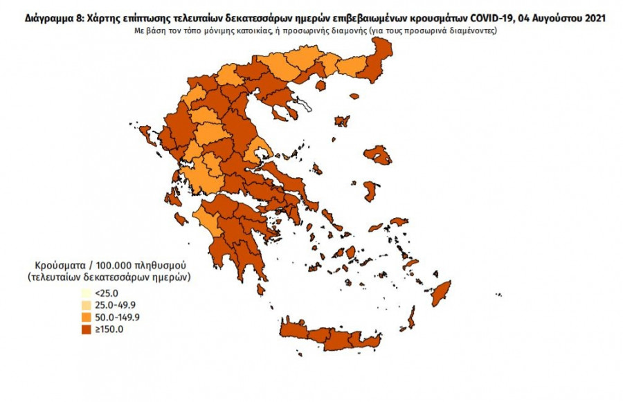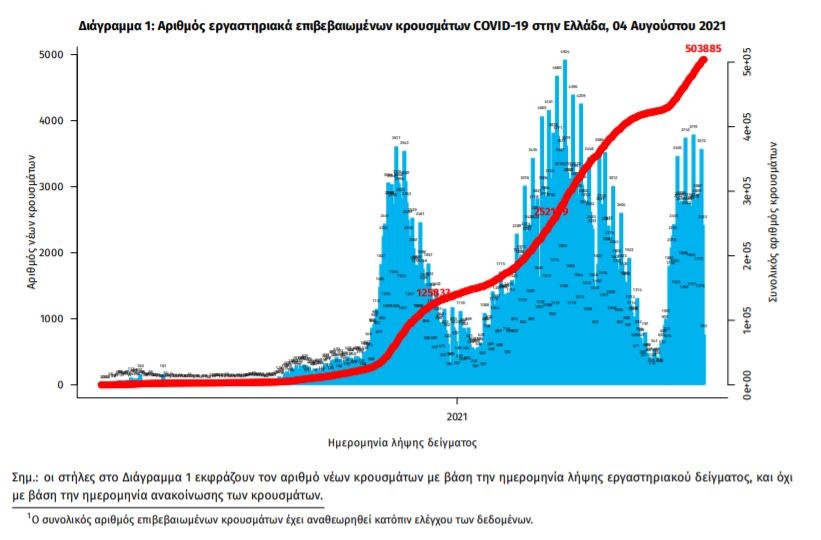 Κορονοϊός - Όλες οι ειδήσεις: Την Τετάρτη 4 Αυγούστου 2021, ο ΕΟΔΥ ανακοίνωσε, 2.856 νέα κρούσματα του νέου ιού στη χώρα, εκ των οποίων τα εννέα εντοπίστηκαν σε ελέγχους στις πύλες εισόδου της χώρας.