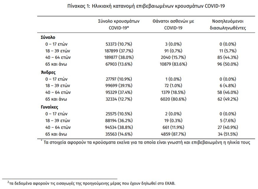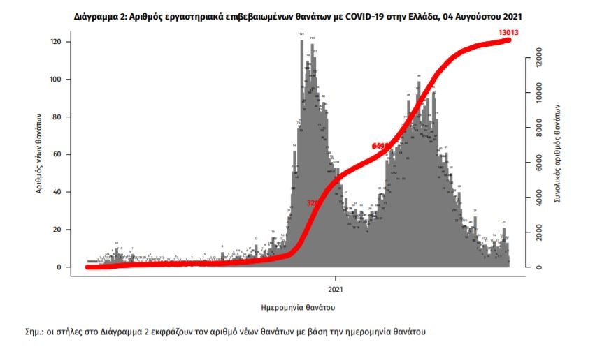 Οι νέοι θάνατοι ασθενών με COVID-19 είναι 16, ενώ από την έναρξη της επιδημίας έχουν καταγραφεί συνολικά 13.013 θάνατοι. Το 95.2% είχε υποκείμενο νόσημα ή/και ηλικία 70 ετών και άνω.
