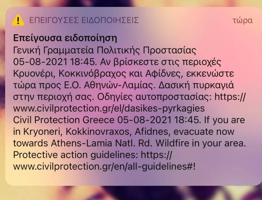 Λίγο πριν τις 7 το απόγευμα δόθηκε εντολή εκκένωσης για τις περιοχές Κρυονέρι, Αφίδνες και Κοκκινόβραχος.