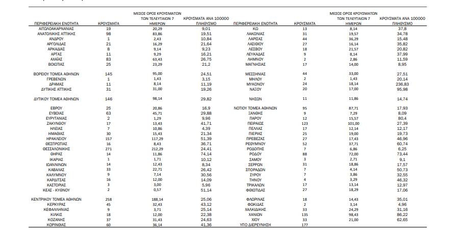 Αναλυτικά η διασπορά των νέων κρουσμάτων σήμερα στην υπόλοιπη Ελλάδα