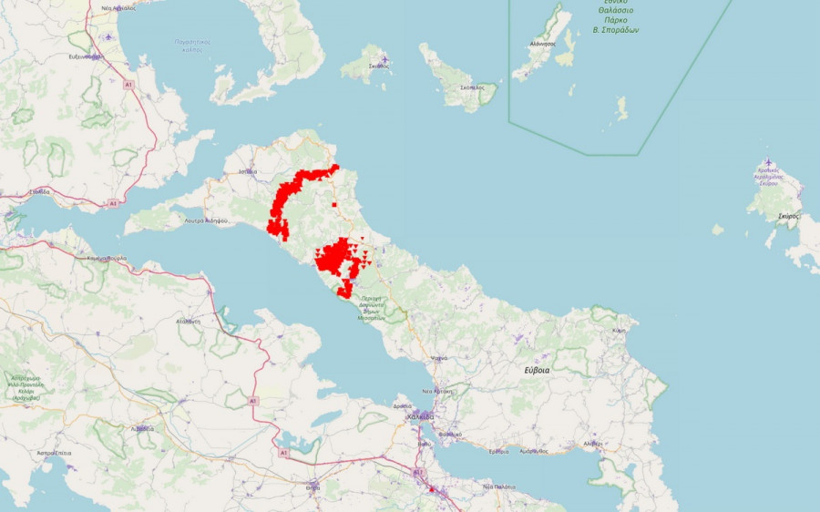 Το μήνυμα της Γ.Γ. της Πολιτικής Προστασίας αναφέρει ότι οι κάτοικοι θα πρέπει να κινηθούν προς Ιστιαία ή το Πευκί, όπου εκεί βρίσκονται φέρυ-μποτ.