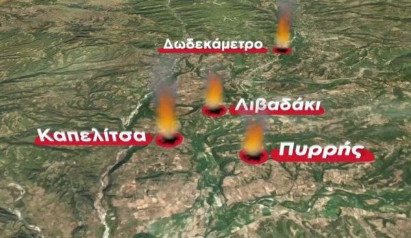 Τα μέτωπα της φωτιάς στην Αρκαδία