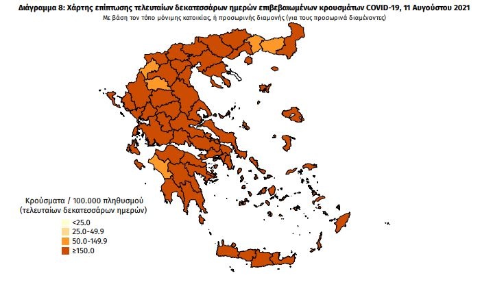 Κορονοϊός - Όλες οι ειδήσεις: Την Τετάρτη 11 Αυγούστου 2021, ο ΕΟΔΥ ανακοίνωσε, 3.475 νέα κρούσματα του νέου ιού στη χώρα, εκ των οποίων τα 15 εντοπίστηκαν σε ελέγχους στις πύλες εισόδου της χώρας.
