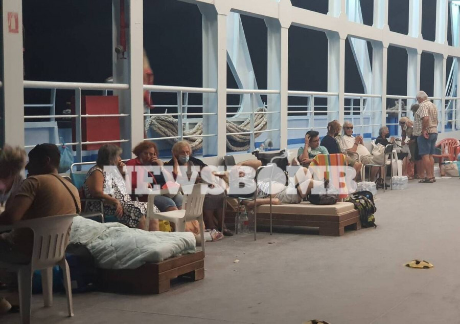Στις φωτογραφίες φαίνονται ηλικιωμένοι άνθρωποι σε αναπηρικά καροτσάκια να επιβιβάζονται με τη βοήθεια συγγενών τους στο ferry boat.
