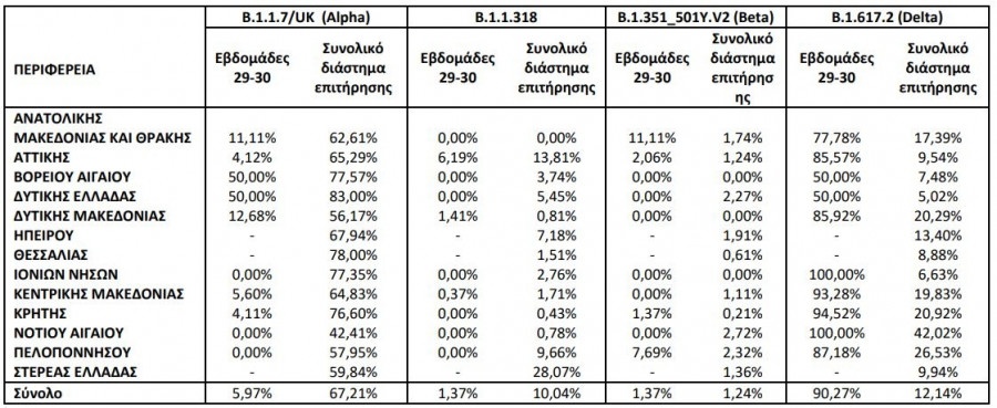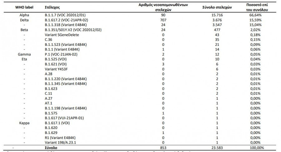 E484K), 4 στο B.1.621 (VOI), 1 στο Eta, 1 στο C.36, 1 στο Kappa και 1 στο B.1.623.