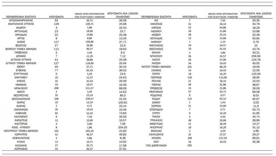 Τα κρούσματα ανά περιφερειακή ενότητα