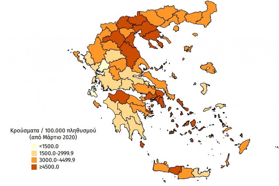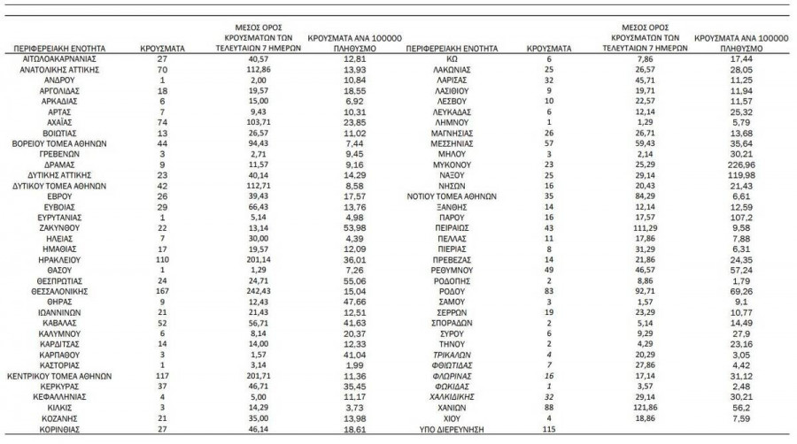 Τα κρούσματα ανά περιφερειακή ενότητα