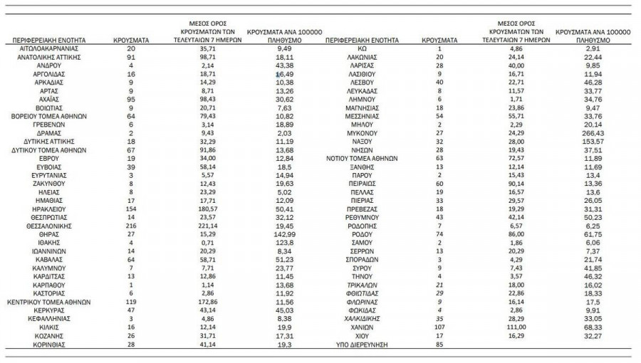 Τα κρούσματα ανά περιφερειακή ενότητα