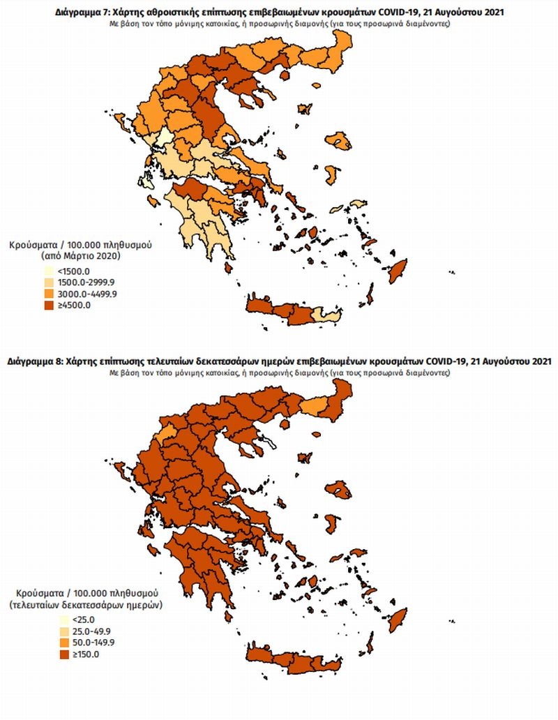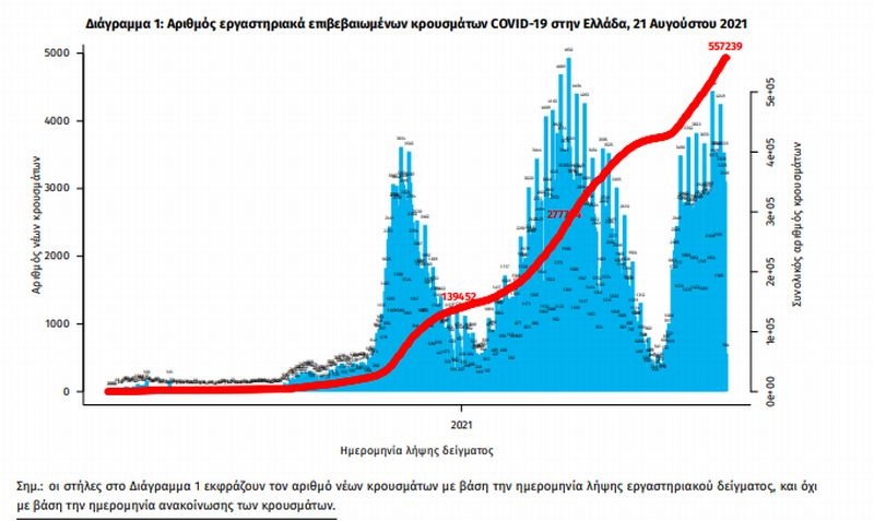 Κρούσματα σήμερα: Τα επιδημιολογικά δεδομένα στη χώρα, το Σάββατο 21 Αυγούστου 2021.