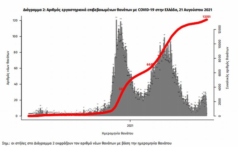 Οι νέοι θάνατοι ασθενών με COVID-19 είναι 23, ενώ από την έναρξη της επιδημίας έχουν καταγραφεί συνολικά 13.351 θάνατοι. Το 95.2% είχε υποκείμενο νόσημα ή/και ηλικία 70 ετών και άνω.